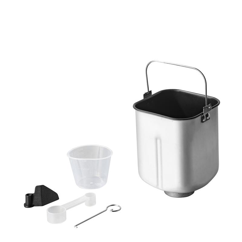 Measuring cup, spoon, hook as accessories inside.