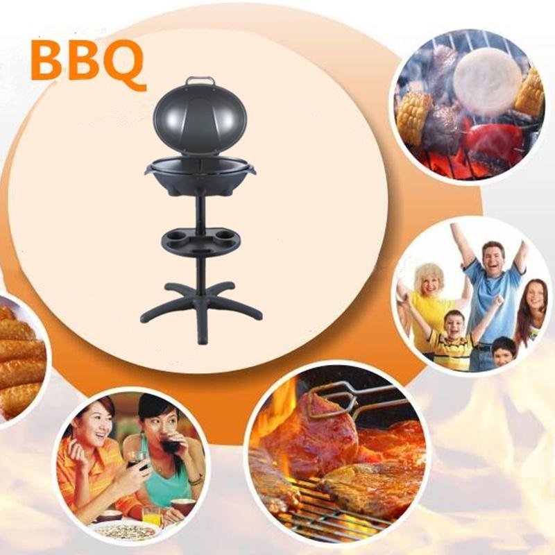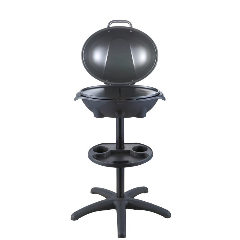 Outdoor electric barbeque with cool-touch handle and removable high-domed lid