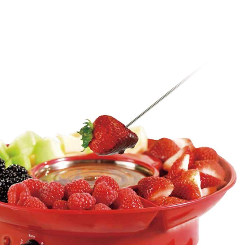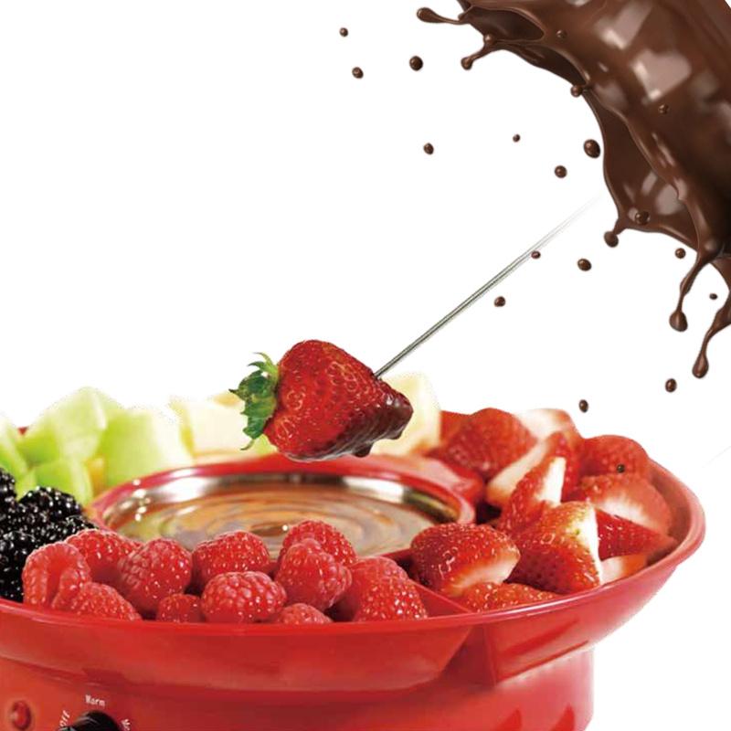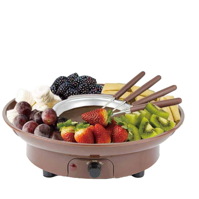 This mini chocolate fountain can heating the chocolate first, when it all become chocolate sauce, we turn on the motor function swith, then the chocolate sauce will mix as a fountain, nice and delicious! This mini chocolate fountain can serve 2-4 person enjoy a mini party.
